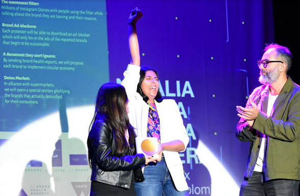 GP Young Golds “Brand Detox”, para promover la Economía Circular, de las jóvenes creativas Natalia Chona y Natalia Cabrera de Geometry Colombia. Un movimiento digital en donde los consumidores publicamente declaran que abandonarán su marca favorita si no se vuelve más sustentable. La acción incluye una platforma de contenidos en Youtube, la participación de artistas e influencers, adblockers y documentos.